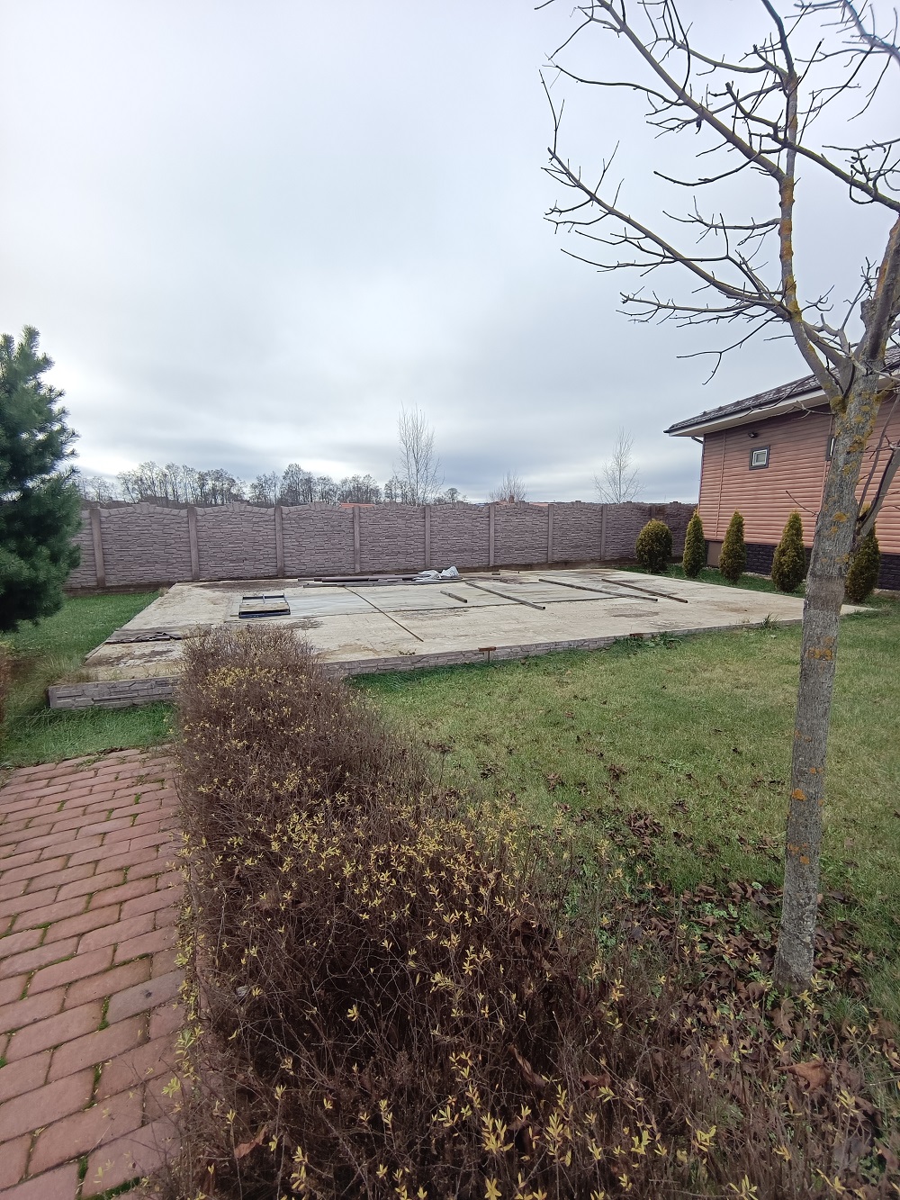 банный комплекс. Также на участке есть фундамент- плита под бассейн, крытая стоянка на 4